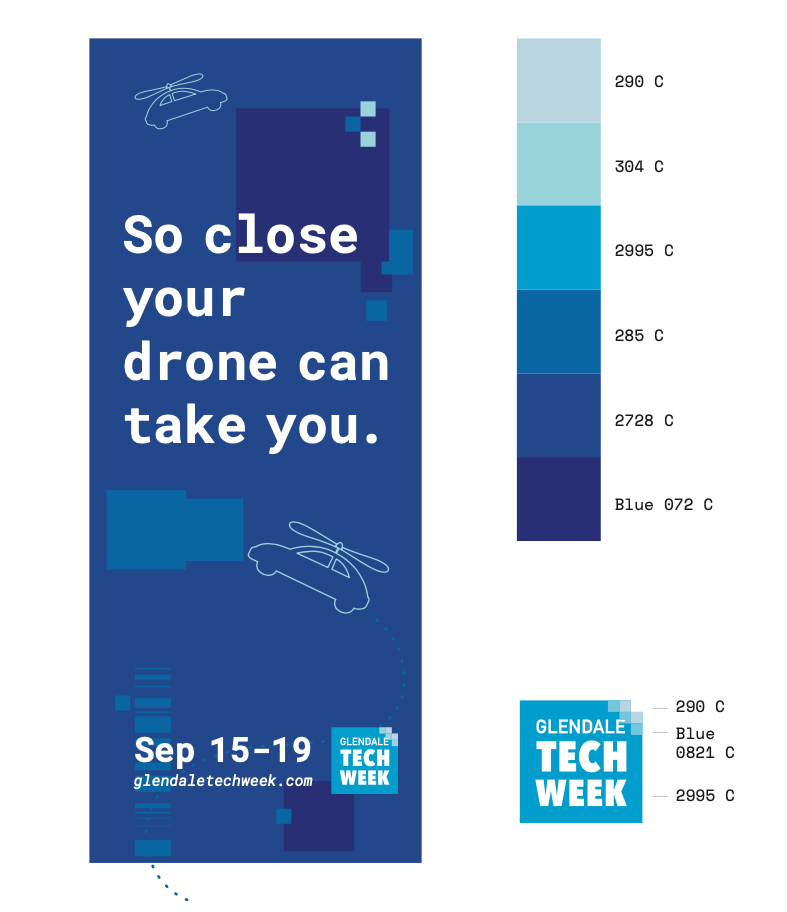 Images Clockwise: Outer Worth brand identity system, (Creative Direction: Stephanie Chan) Glendale Tech Week event identity system (Creative Direction, Copywriting: Stephanie Chan, Design: Jessica Peng, Sharleen Chen, Darren Duterte, Media Buying Jesica First), Post Alarm rebrand identity system (Creative Direction, Copywriting: Stephanie Chan, Design: Tracy Tran, Darren Duterte, Media Buying Jesica First)